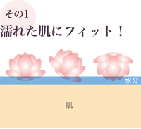 花びら粒子独特の凹凸のおかげで、水分の上からでも肌にぴったりとフィット。
