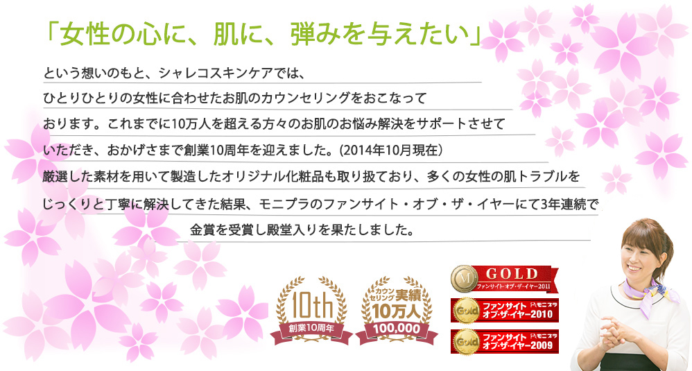 また、若い頃はハリがあるからニキビをつぶしてしまっても治りが早かったのですが、年を重ねてからはどんどん治りにくくなって困っていたんです。シャレコに出会って、改善されました。